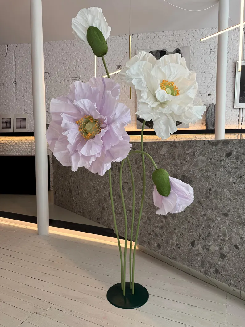 Our stunning giant flower decor has a beautiful shape and excellent workmanship. It can be disassembled at will for easy transportation. One person can complete the assembly. The height of the liftable base can be adjusted arbitrarily. The flower stem of the aluminum-plastic tube can be bent into the desired shape,outdoor waterproof.