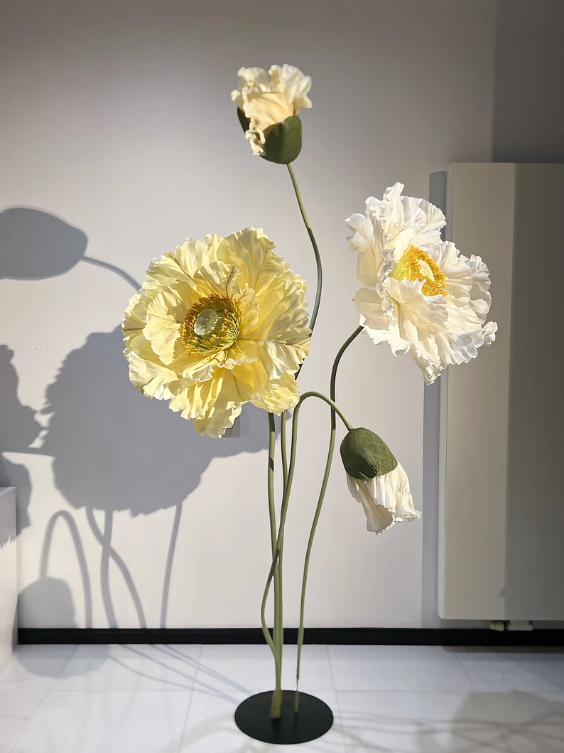 Our stunning giant flower decor has a beautiful shape and excellent workmanship. It can be disassembled at will for easy transportation. One person can complete the assembly. The height of the liftable base can be adjusted arbitrarily. The flower stem of the aluminum-plastic tube can be bent into the desired shape,outdoor waterproof.