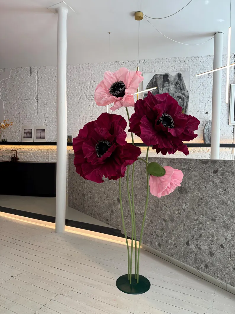 Our stunning giant flower decor has a beautiful shape and excellent workmanship. It can be disassembled at will for easy transportation. One person can complete the assembly. The height of the liftable base can be adjusted arbitrarily. The flower stem of the aluminum-plastic tube can be bent into the desired shape,outdoor waterproof.